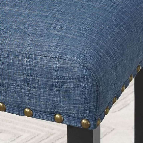 Biony Blue Fabric Counter Height Stools with Nailhead Trim, Set of 2