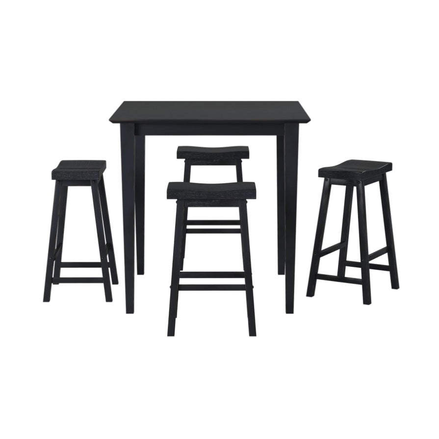 The saddle seat stools and 29-inch height of this Collection are designed for placement within your casual dining area. The black sand-through finish allows for neutral complement to your dining space.