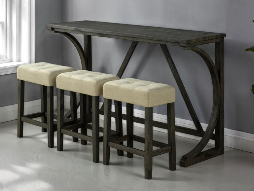 Unique Functional USB option Top Table, features a unique table design paired with three matching stools, perfect for space-saving style.