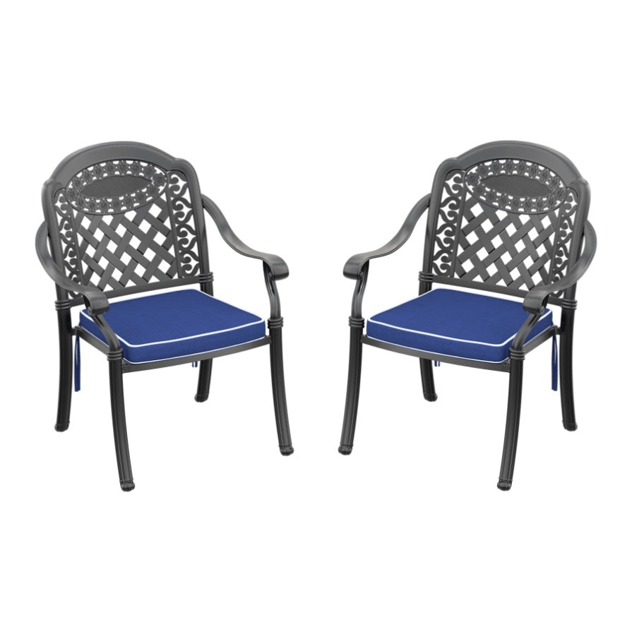 Cast Aluminum Patio Dining Chair 2PCS With Black Frame and Cushions In Random Colors W1710P166003