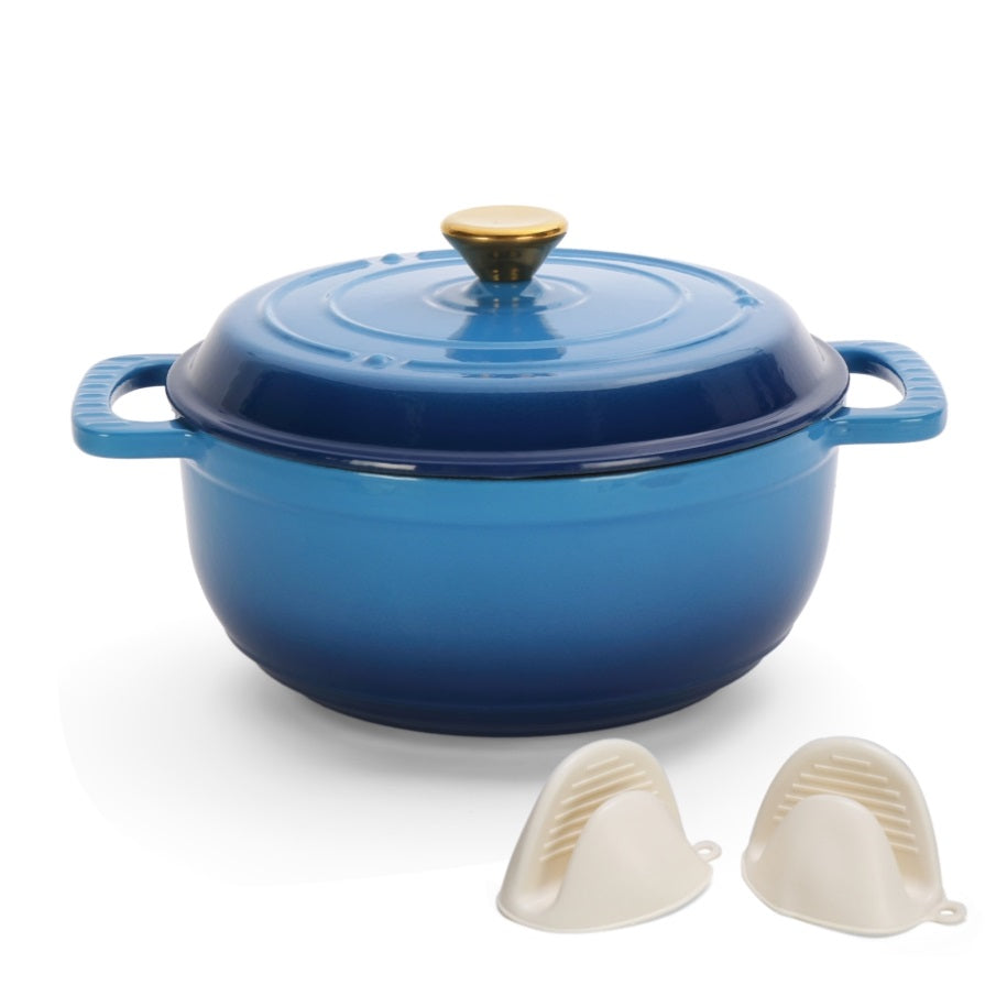 Cast iron 5QT cooking pot - Gradient blue - Includes two silicone gloves - Enamel pot 72431906