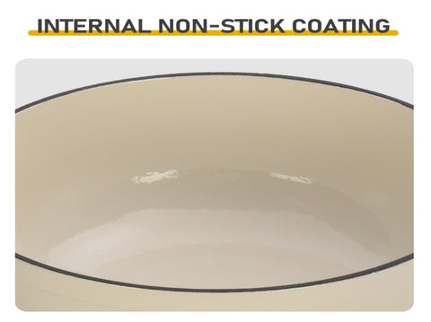 Double-layer enamel process on both the inside and outside, with a high-gloss finish on the exterior and a non-stick design enamel layer (the non-stick enamel layer resists stubborn stains).