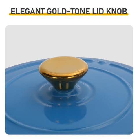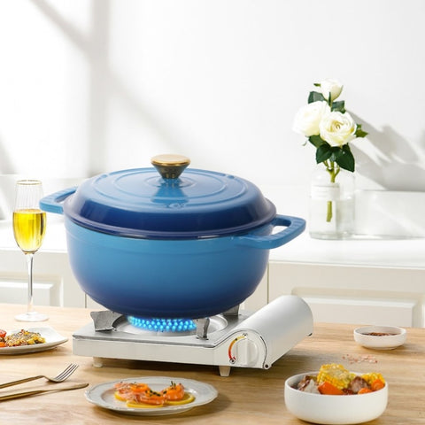 Cast iron 6QT cooking pot - Gradient blue - Includes two silicone gloves - Enamel pot 85024210