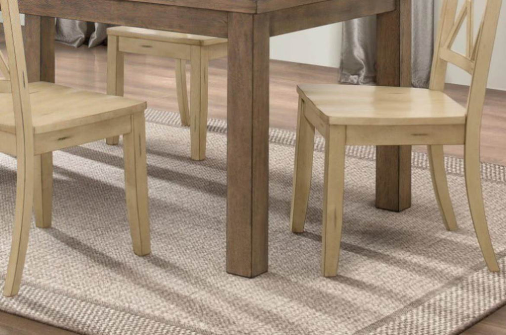 At home in a casual country setting, the Janina Collection allows for a customizable look to match the décor of your dining space. The buttermilk finish of the side chairs pine veneer complements its transitional double-x back design and allows for unique accent to your dining room.