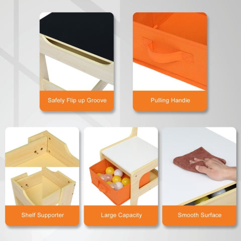 Children's Wooden Table And Chair Set With Two Storage Bags is the perfect size for children to eat, read books, color, do arts and crafts, play board games, and just have fun. The table and chair set is ideal for your toddler's bedroom, playroom, or the living room. This piece of furniture is easy to assemble and the sturdy table and chairs are great for  kids ages three to eight. Construction on this engineered wood table and chair set offers solid support and long-lasting durability. The height of this furniture is just right for toddlers and preschool-aged children. Giving your little one a table and chair set at their size gives them a sense of control and helps them learn independence.