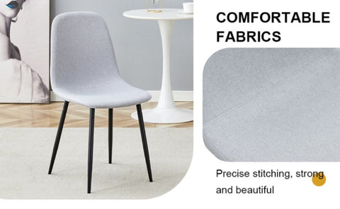 Light Grey Linen-Cotton Texture: The dining chairs are made of light grey linen-cotton fabric, with integrated seat and backrest design, solid color style, breathable and soft comfort,offering a warm and comfortable touch while presenting an elegant home atmosphere.Comfortable Experience: Thoughtful ergonomic design, ensure comfort during long periods of use.