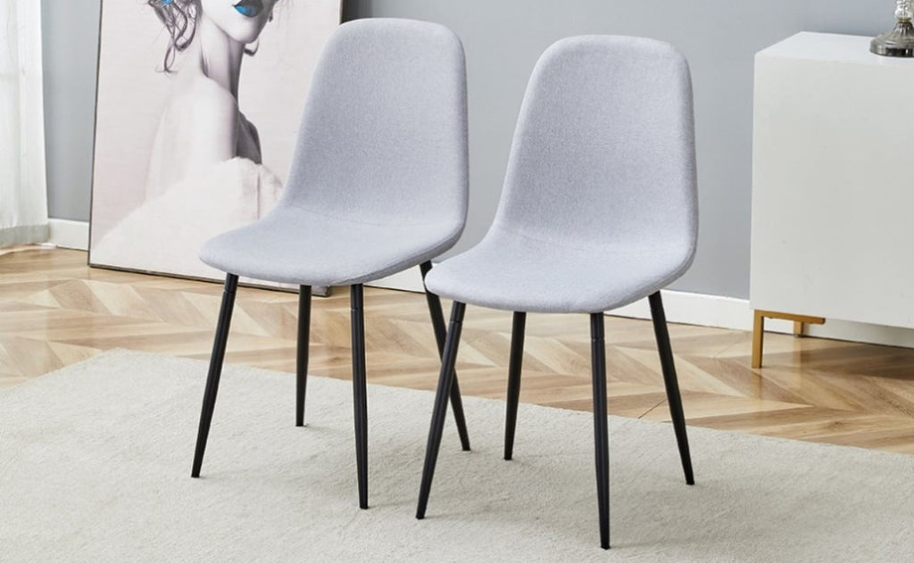 Linen-Cotton Material: The chairs are made of light gray linen-cotton, naturally breathable, offering excellent comfort.Easy to Clean: The linen-cotton material is easy to clean and maintain, keeping the chairs fresh and new.