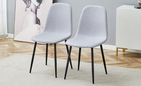 Light Grey Linen-Cotton Texture: The dining chairs are made of light grey linen-cotton fabric, with integrated seat and backrest design, solid color style, breathable and soft comfort,offering a warm and comfortable touch while presenting an elegant home atmosphere.Comfortable Experience: Thoughtful ergonomic design, ensure comfort during long periods of use.
