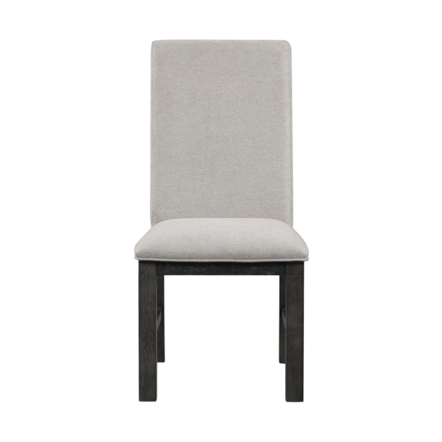 The transitional framing of the Orem Collection will provide a perfect mealtime platform for your casual dining room. The antique black finish of the collection’s oak veneer creates a versatile decorative accent to your space. Gray fabric upholstery covers the seats and backs of the wood leg-supported side chairs.
