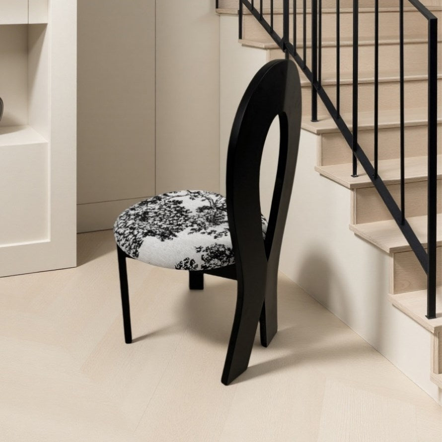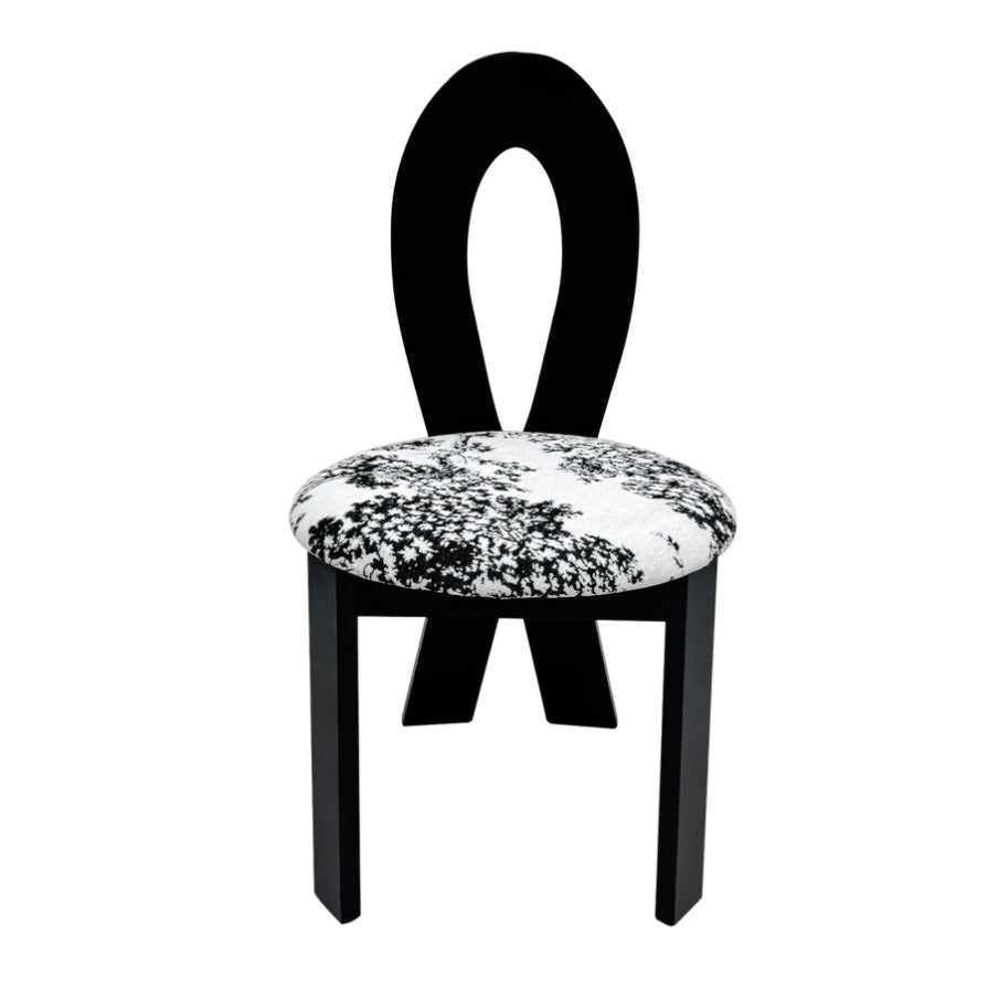 Artistic Ribbon-Cross Backrest DesignThe signature keyhole-shaped backrest incorporates elegant crisscrossing ribbon accents, providing both ergonomic lumbar support and artistic visual appeal. The combination of dark walnut wood and pure white teddy velvet creates a perfect balance of classic and contemporary style.