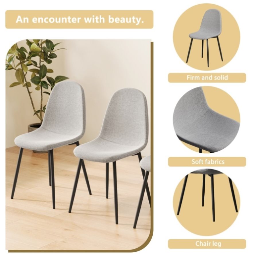 • 2.This four piece dining chair set features high-quality fabrics and a sturdy metal frame design, adding a modern touch to your dining area.