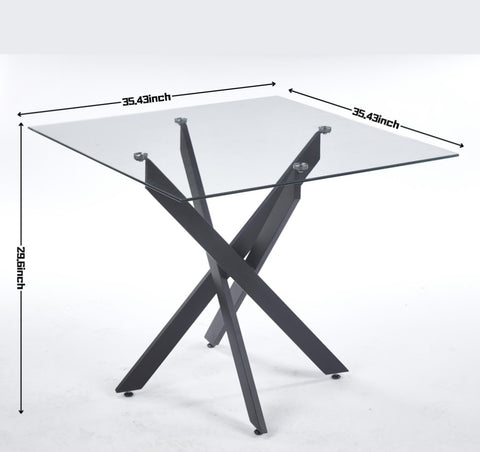 Dining Table with cross metal leg and tempered glass,Modern Space Saving Kitchen Table for Living W234P278089