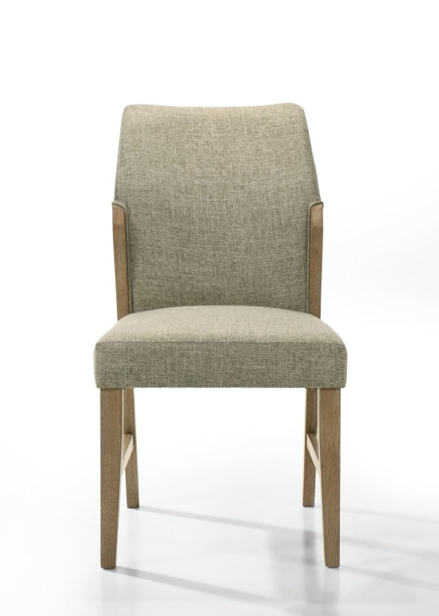 Eden Set of 2 Beige Linen Dining Chair with Rustic Oak Finish Legs B061P291331