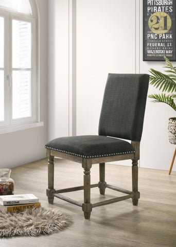 The Everton Dining Chairs is a perfect blend of style and functionality for your dining space. The set includes two chairs, allowing you to create a cohesive and inviting dining experience for yourself and your guests. One of the standout features of these chairs is the exquisite nailhead trim. The nailhead detailing adds a sophisticated and upscale look, elevating the overall aesthetics of the chairs. Crafted with solid wood legs in a reclaimed gray finish, these chairs offer durability and stability. The Everton Dining Chairs seamlessly combines style, durability, and comfort, making them an excellent choice for your dining area.