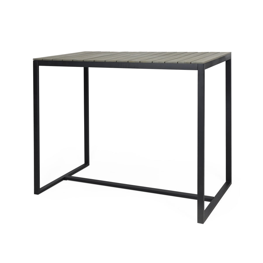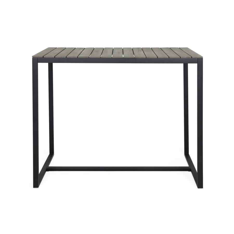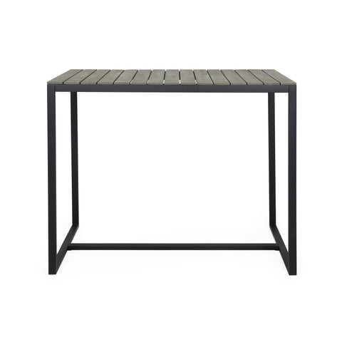 Ernesto Outdoor Industrial Acacia Wood Bar Table, Gray Finish/Black