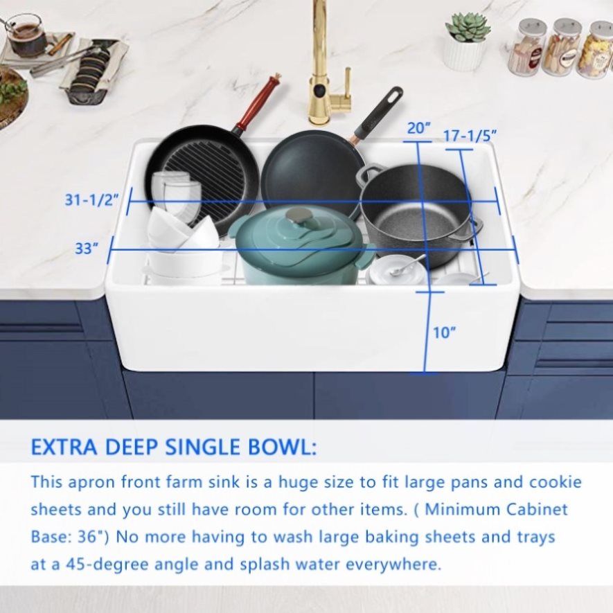 Fireclay 33" L X 20" W Workstation Farmhouse Kitchen Sink With Accessories W122567038