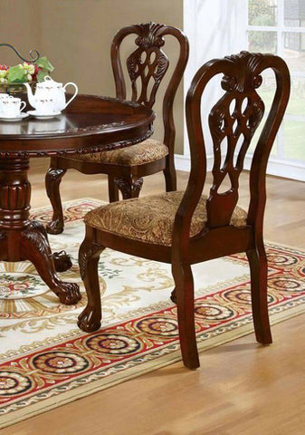 Formal Classic Traditional Dining Chairs Cherry Solid wood Damask Print Fabric Seat Intricate Back B01172303