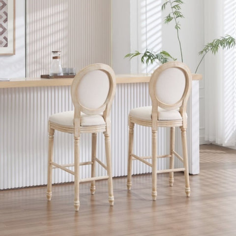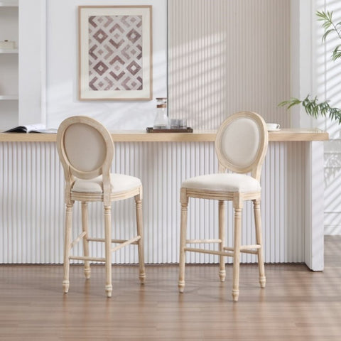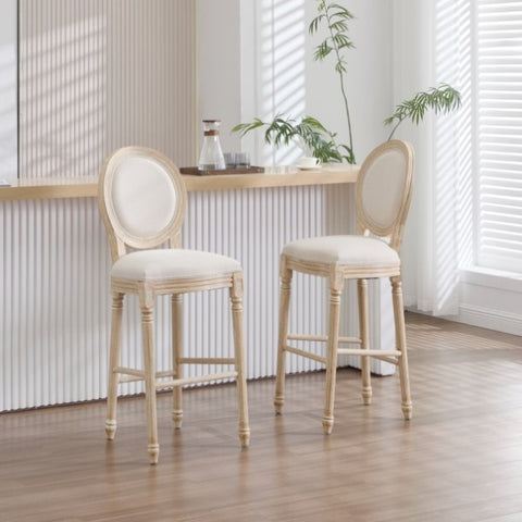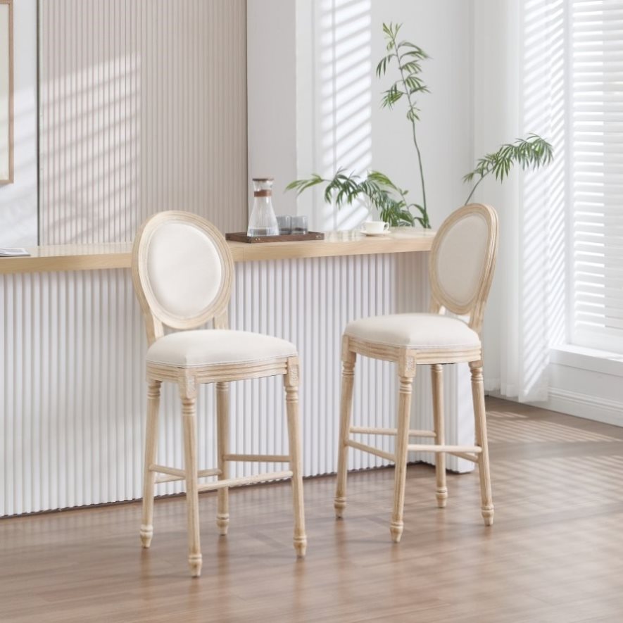 French Country Dining Chairs Set of 2, Upholstered Chairs with Round Back, Wire drawing and carving W3426P324576