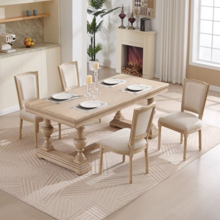 High-quality Cotton and Linen FabricThe French-style dining chairs are made of high-quality cotton and linen fabric, which is soft and comfortable, and also more durable and environmentally friendly.