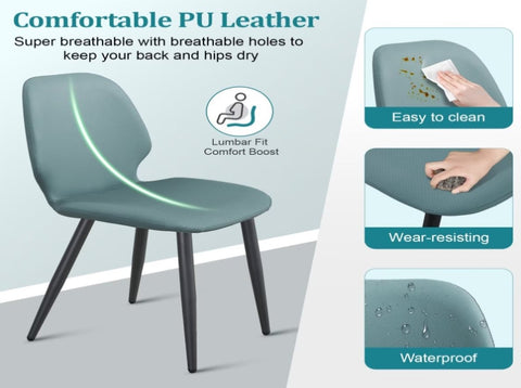 Green Leather Dining Chair with Metal Legs, Shell Shape Upholstered Chair Set of 6 for Kitchen, T3967P409151