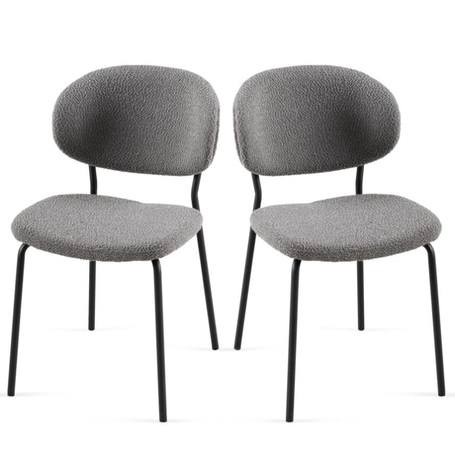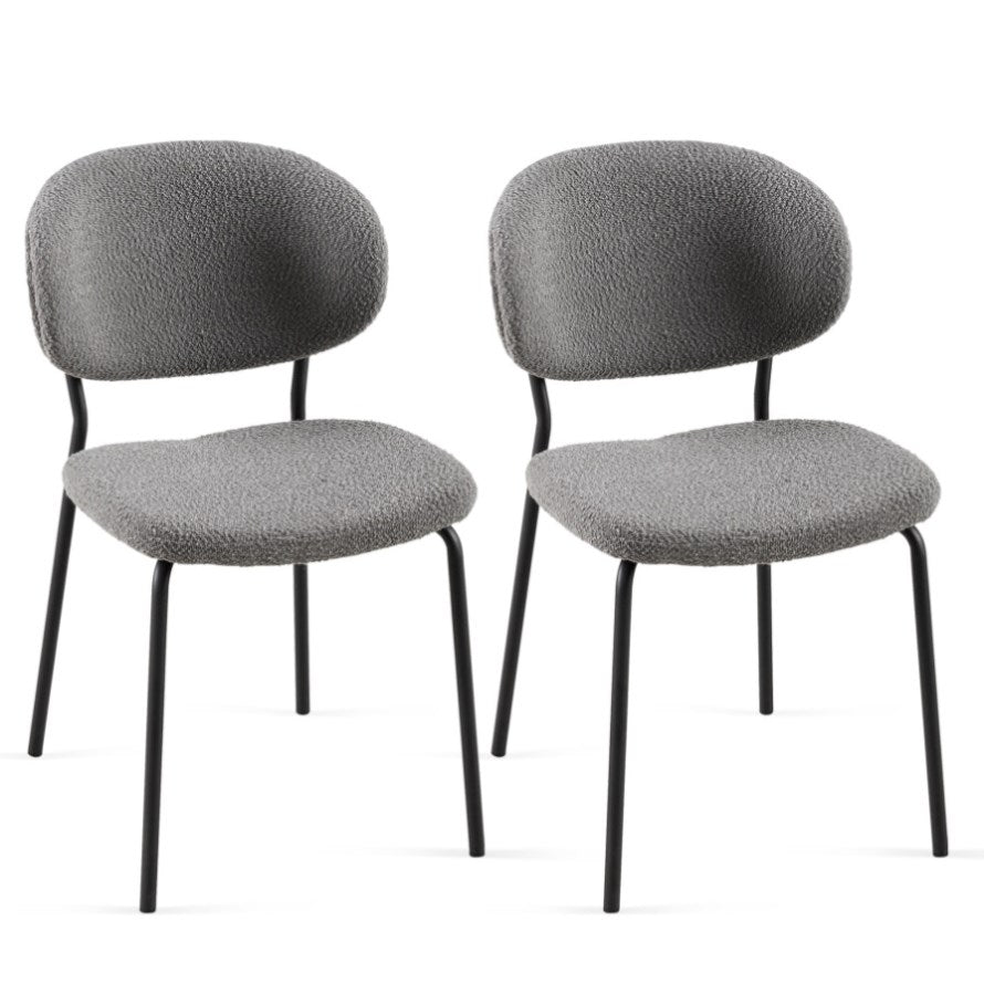 Grey Boucle Fabric Dining Chairs Set of 2