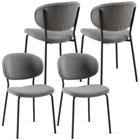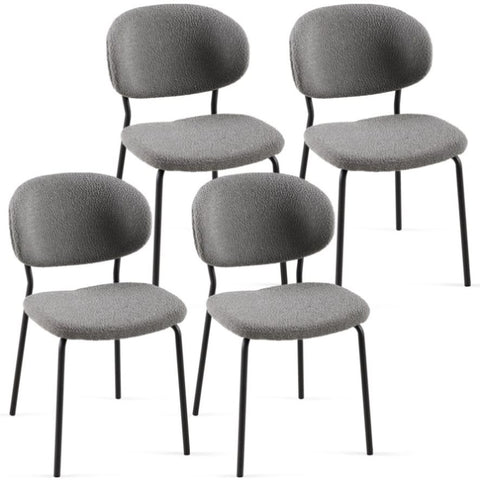 Grey Boucle Fabric Dining Chairs Set of 4, Mid-Century Modern Dining Kitchen Dining Room W1164P195045