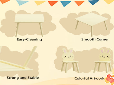 【Adorable Bunny-Themed Design】This kids table and chair set features two charming bunny-shaped chairs that create a fun and inviting space for reading, drawing, crafting, and snack time. A delightful addition to any playroom or bedroom.