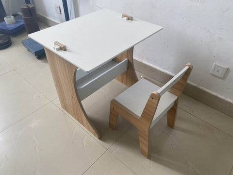Kids Table Set with One Chair, Multifunctional Wooden Children Study Table-Convertible Tabletop for 58011594
