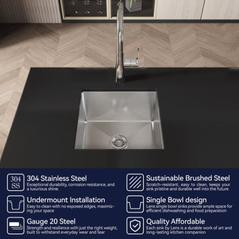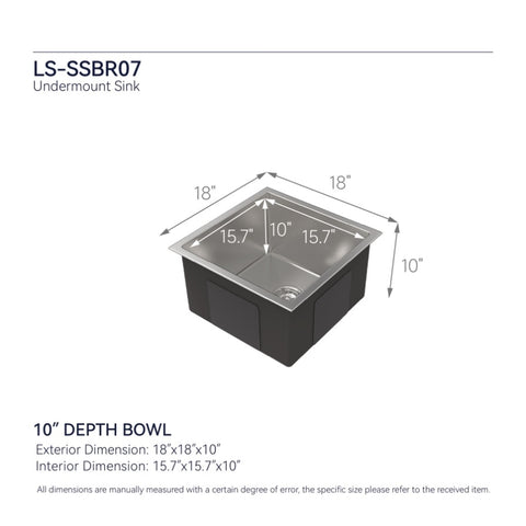 18 INCH WORKSTATION KITCHEN SINK: 18" (wide) x 18" (length) x 10" (depth). The drop-in kitchen sink's exterior design ensures a modern and elegant aesthetic while maximizing the available space to accommodate large dishes pots and pans.