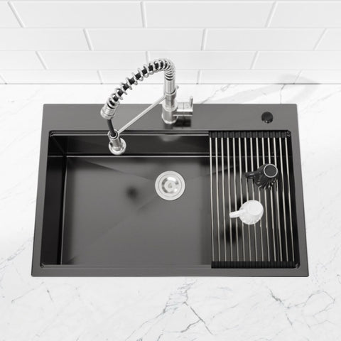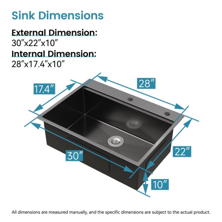 HANDCRAFTED KITCHEN SINKS: Features with HANDMADE craftsmanship, made of 18-gauge, 304-grade brushed stainless steel, the thickness is uniform and the texture is better. It will not cause the sink to be too thin like stretched sinks. Longer service life. A brushed satin finish tends to hide water spots. The flawless, smooth texture and golden ratio R10 rounded corners make it more aesthetic, and functional.