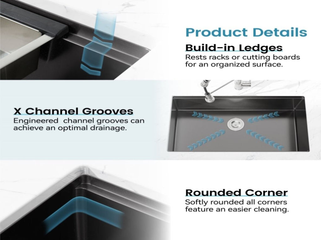 X-SHAPED DIVERSION DESIGN: The bottom of the sink adopts a scientific X-shaped diversion design which makes it fast, and effectively drain off water.