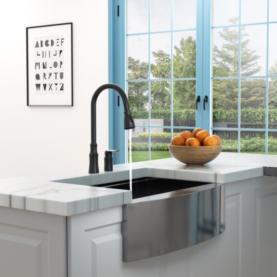 [Easy To Clean] The kitchen faucet has Matte black finish, which resists not only fingerprints, but also resists spots, and keeps your faucet glossy and looking like new.