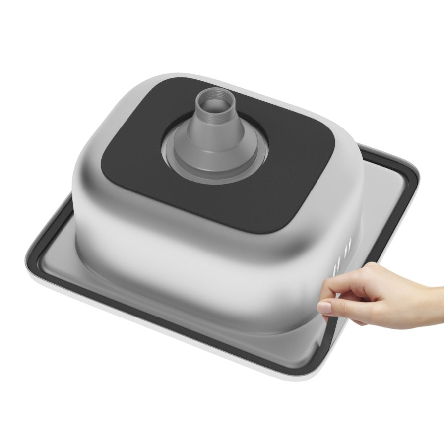 Measuring 14.9" x 14.9" x 10.2", it features detachable filters to prevent food particles from clogging the drain. The strategically placed overflow outlets manage water levels, preventing spills from excessive flow.