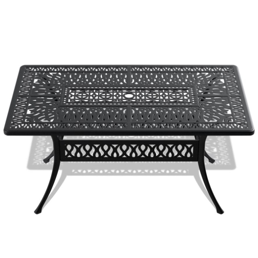 L58.27*W34.65-inch Cast Aluminum Patio Dining Table With Black Frame and Umbrella Hole W1710P166030