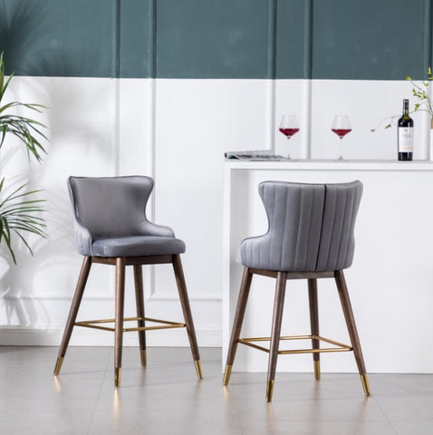 Mid-century inspired stools feature wingback and sleek tapered legs underneath, vertical stitches on the chair back add the dimension of the design