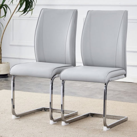 Luxury Simple Arch Chair - Set of 2 Light Gray PU Material High Resilience Dining Chair with Arched W1151P154870