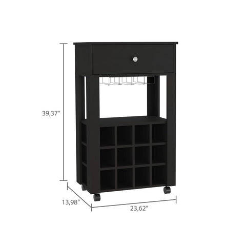 Memphis Bar Cart, Twelve Built-in Wine Rack, Four Legs, One Open Shelf -Black B07091948