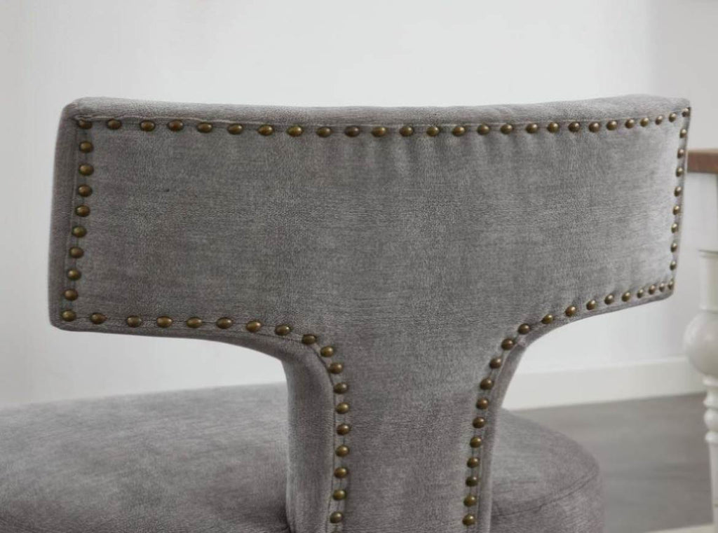 The curved backrest is decorated with copper nails around it.
