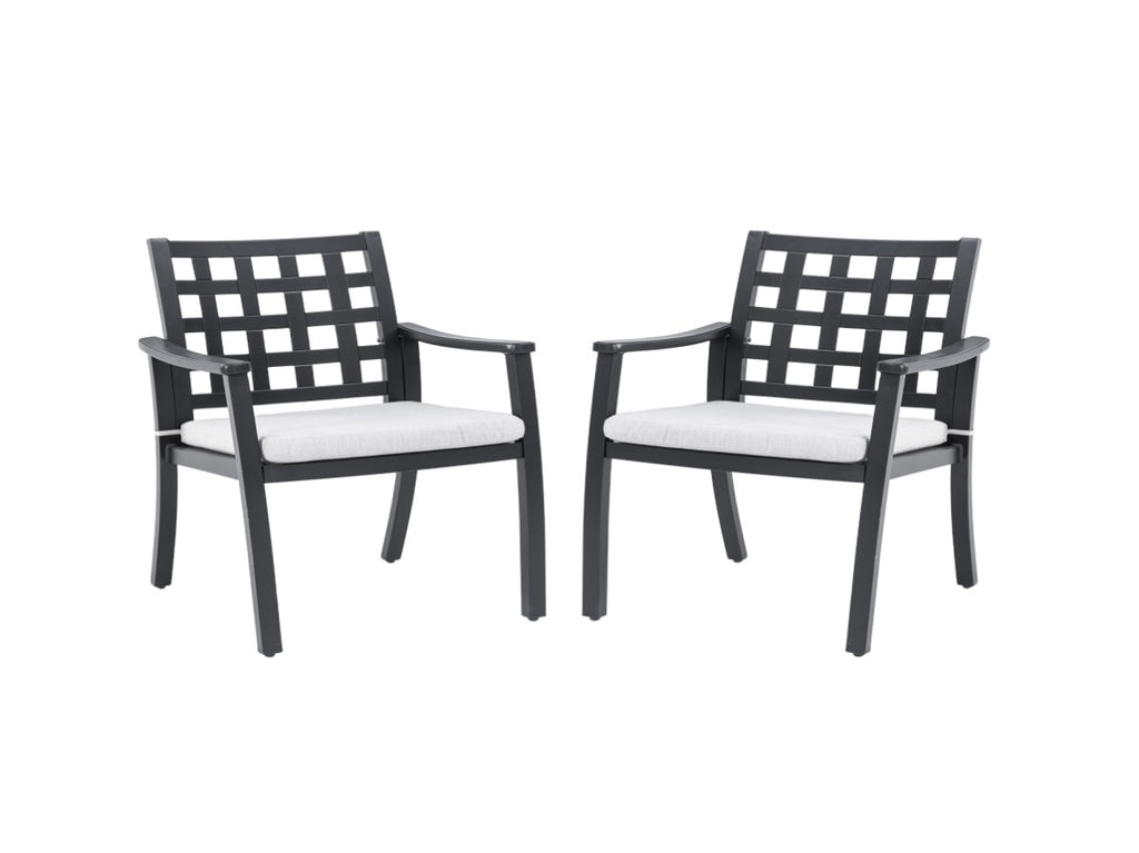 Modern Classic Cast Aluminum Outdoor Patio 2-Piece Dining Chairs, Textured Ember Black Finish, W1886P271053