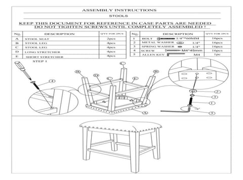 Stools : 16" x 21" x 24"H 24"H Seat Height