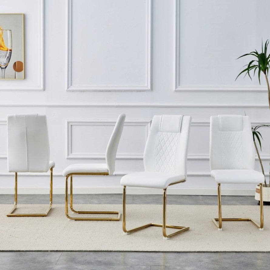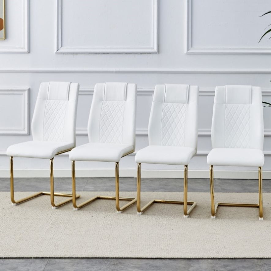 Modern dining chairs, dining room chairs, and golden leg cushioned chairs made of artificial W1151107095