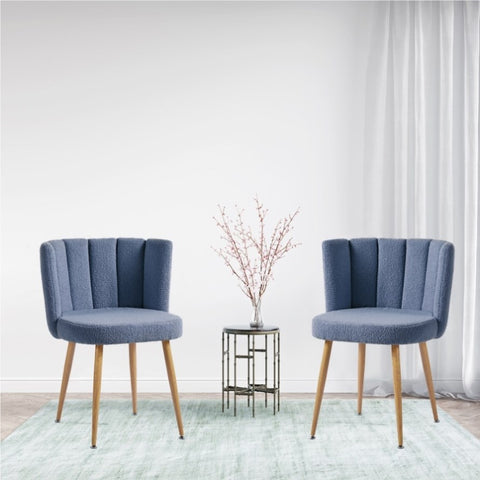 Modern haze blue dining chair with iron tube wood color legs, shorthair cushions and W234P181853