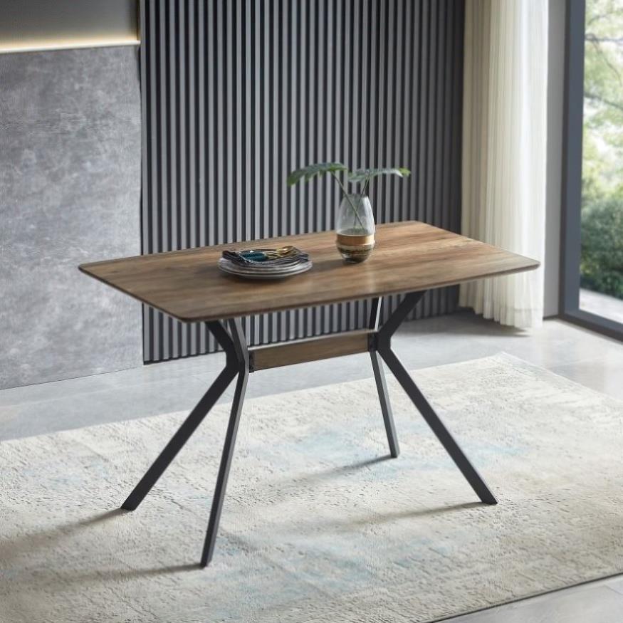 Modern Minimalist Style Dining Table MDF wooden Top Black Metal Shelf Metal Heat Transfer Legs W241132801