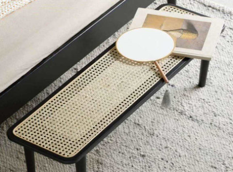 The main material of this bedroom bench is FAS grade solid oak. Selected natural rattan imported from Indonesia and hand trimmed.