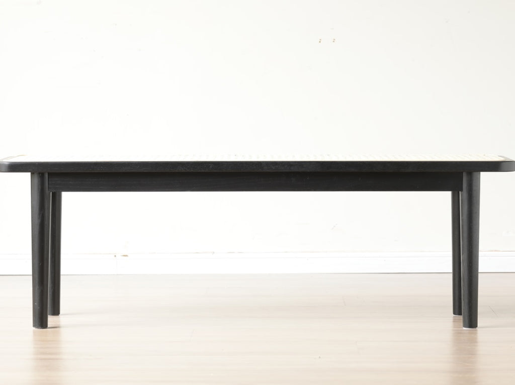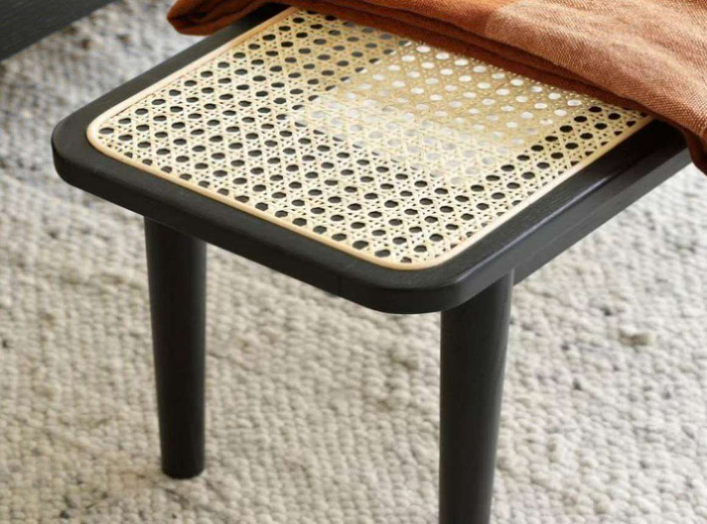 Detailed Design Rattan bench top is handcrafted with a tough octagonal eyelet weave. Rounded oak legs are weight-bearing and sturdy. Black Size:39.37"W x11.02" D x 16.92" H.