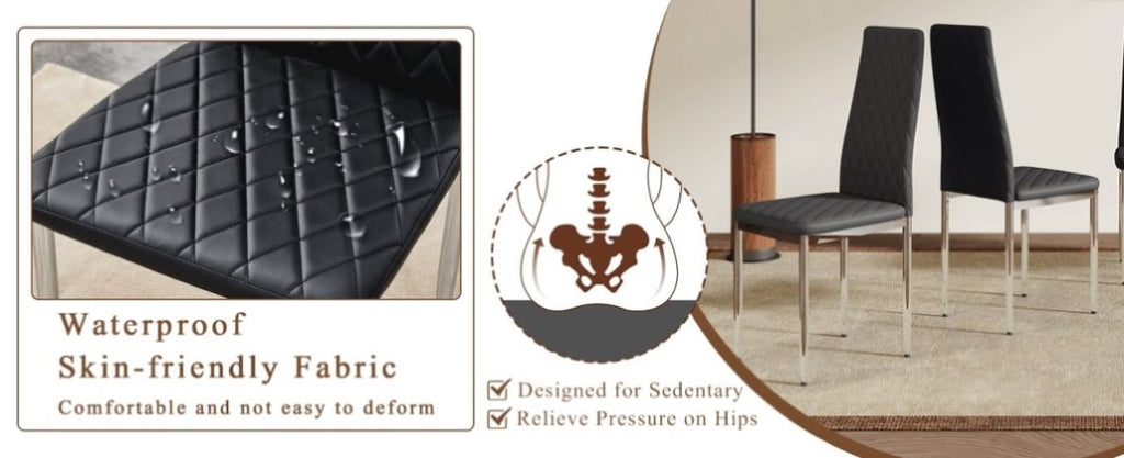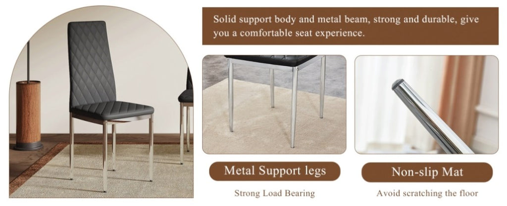 Silver Metal Legs, Stable and StrongThe legs are constructed from silver metal, ensuring structural stability, strong load-bearing capacity, and safe usage.Anti-slip Pads Design, Enhancing SafetyEquipped with anti-slip pads on the chair feet, effectively preventing the chairs from sliding during use, enhancing safety and stability.