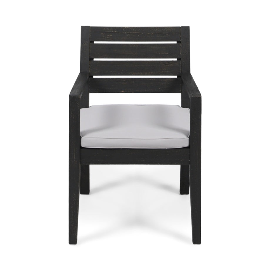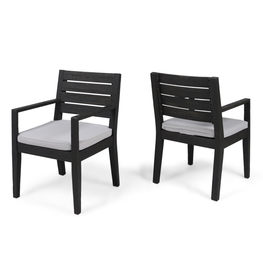 Includes: Two (2) Dining Chairs. Frame Material: Acacia Wood. Cushion Material: Water-Resistant Fabric.