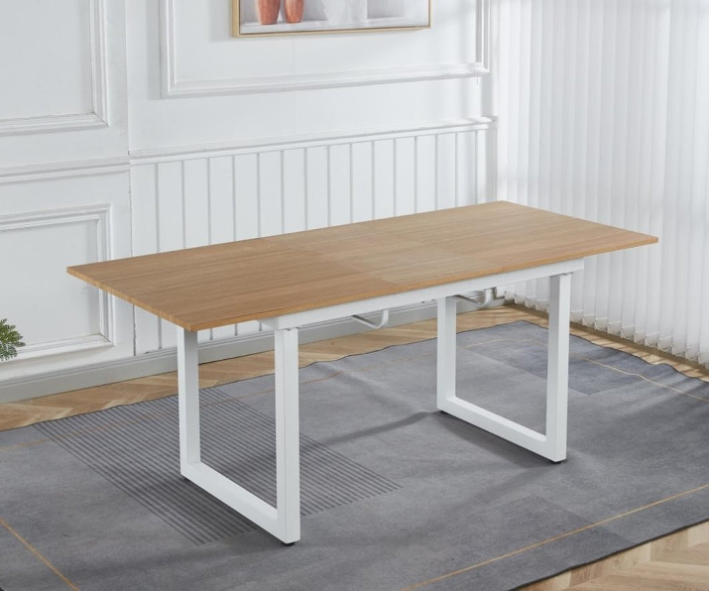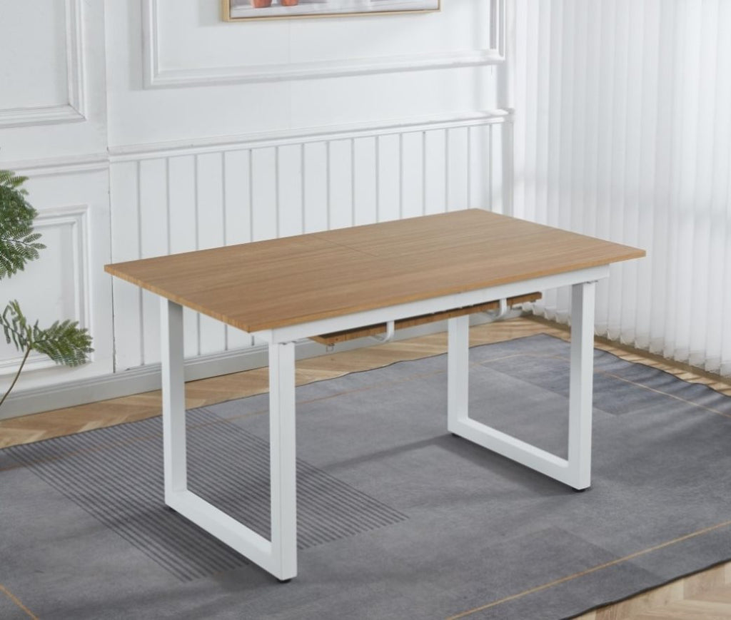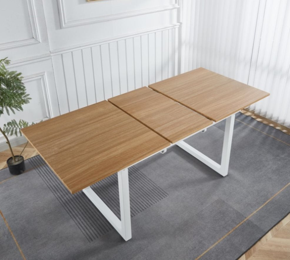 oak color,Square Extendable Dining Table with metal leg,Modern Space Saving Kitchen Table for Living W234P282510