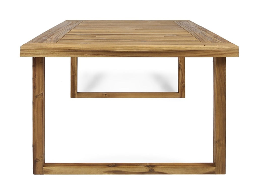 Includes: One (1) Outdoor Dining Table. Material: Acacia Wood. Finish: Natural