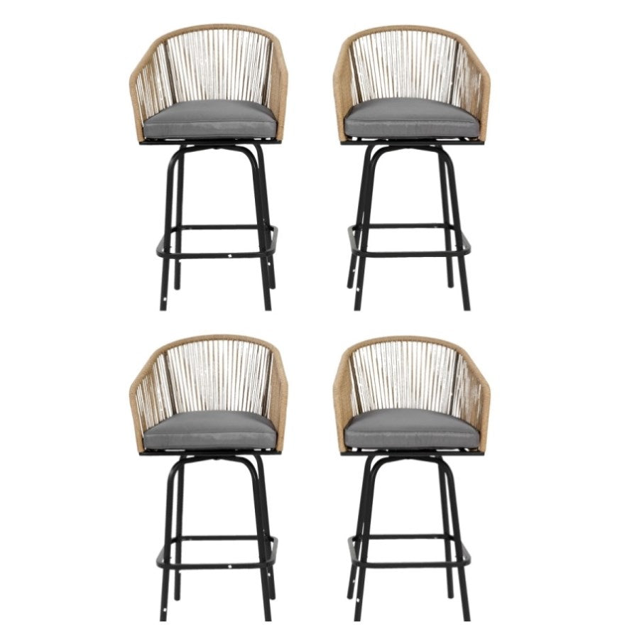 Outdoor Bar Stools Set of 4, 4-Piece Patio Bar Stools with Armrests-Grey